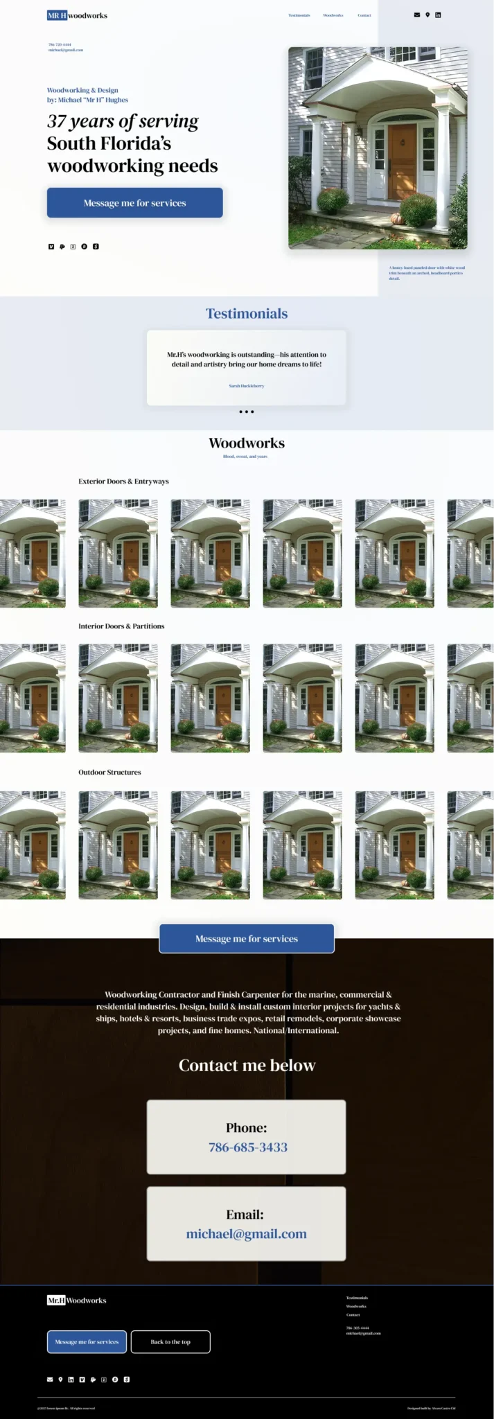 Custom landing page for a woodworking client, built from a simple idea and shaped through consultation into a design and brand that fit his business.